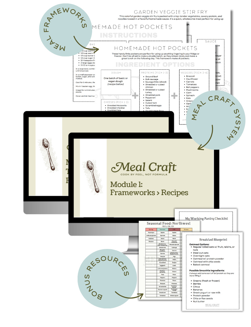 For the past 10+ years, I’ve been streamlining heritage kitchen wisdom to fit real life. And Meal Craft is where it all comes together: Simple, nourishing, flexible meals that you can actually make—no matter what the day throws at you.